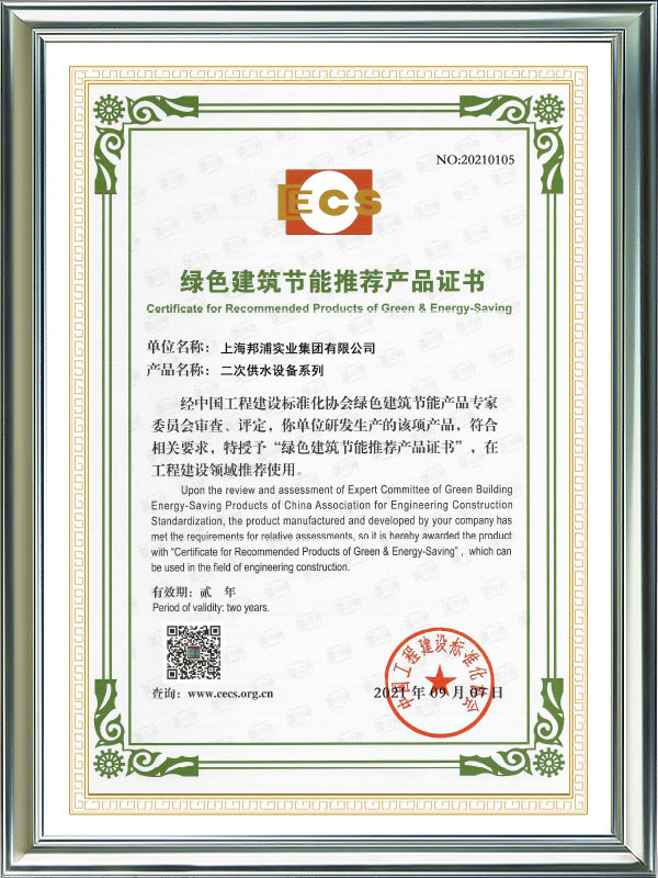 Certificaat voor groen bouwen Energiebesparend aanbevolen product